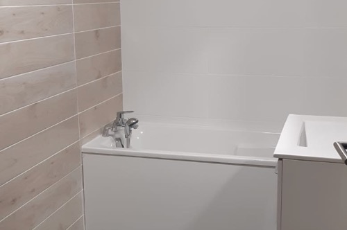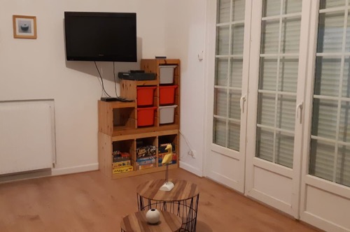 Un couloir vous mènera aux autres pièces du rez-de-chaussée, parmi lesquelles: 1 salle de bain (baignoire & douche), une chambre avec lit double, une salle TV (pouvant servir de 7ème chambre au besoin car disposant d’un canapé lit), un escalier vous permettant d’accéder à l’étage.