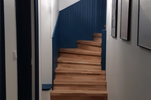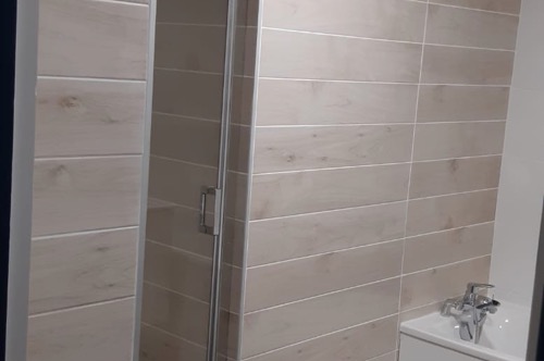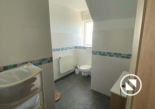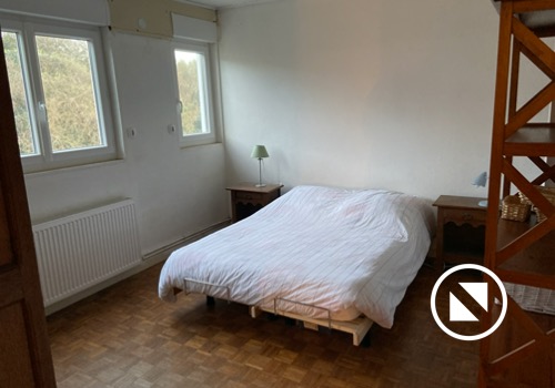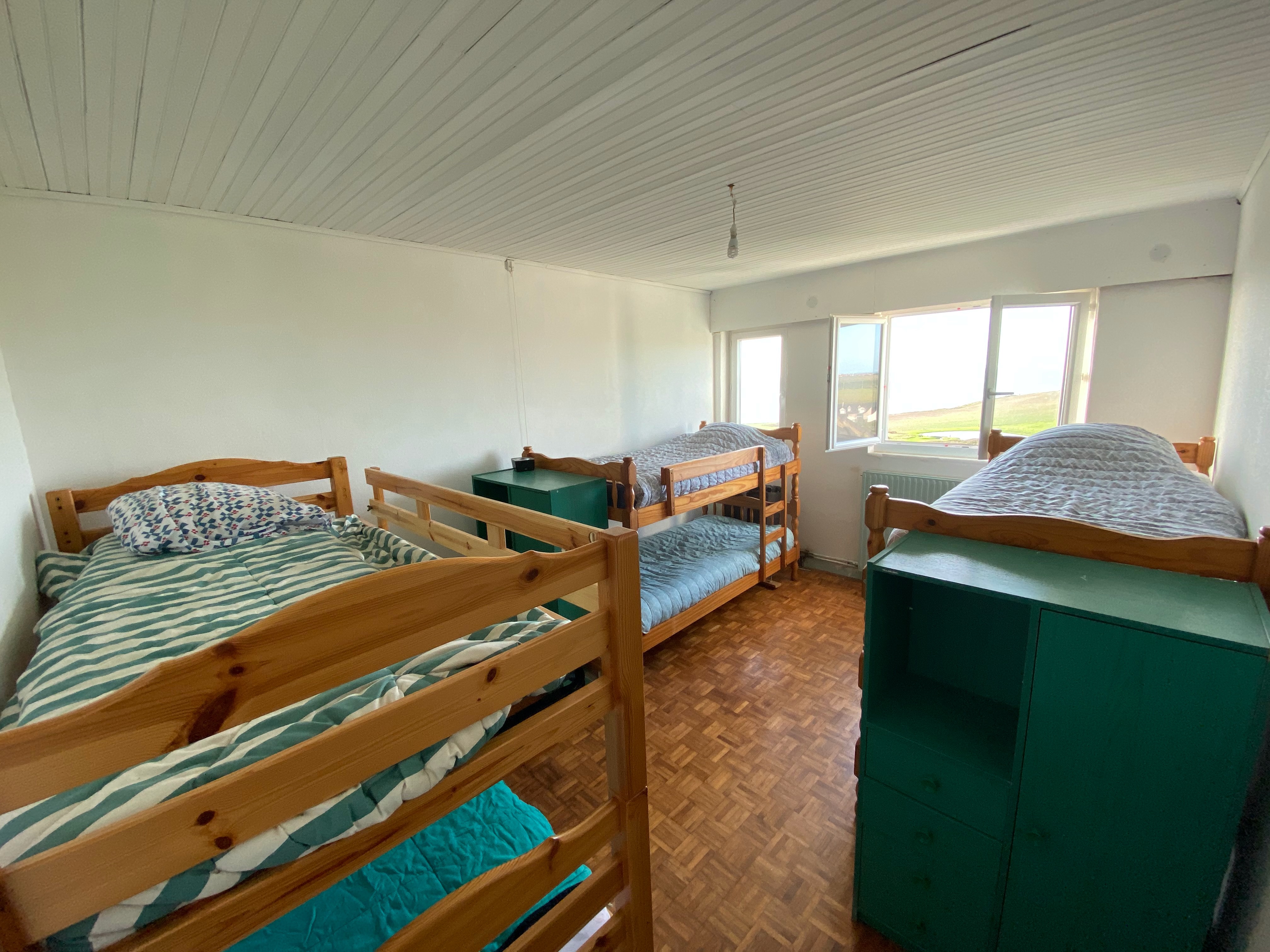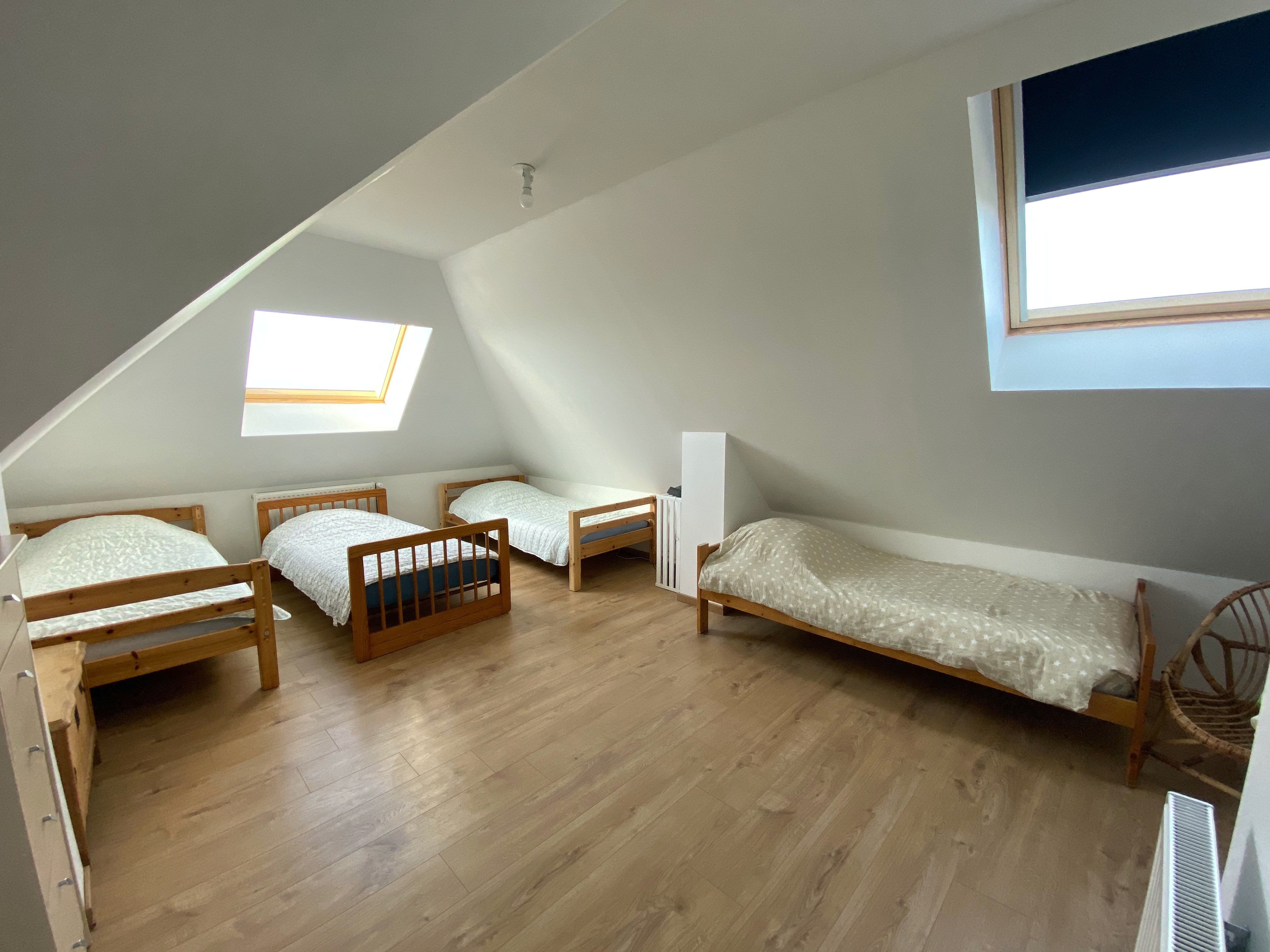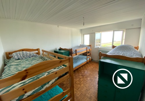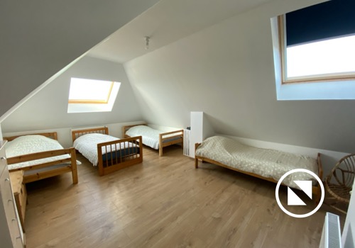 En haut de l’escalier se trouve un pallier déservant 3 chambres (1 de 4 lits simples, 1 de 3 lits superposés - donc 6 couchages, 1 avec 1 lit double), une salle de bain (douche, lavabo & WC) et un couloir qui vous mènera aux 2 dernières chambres toutes les 2 dotées d’un lit double)